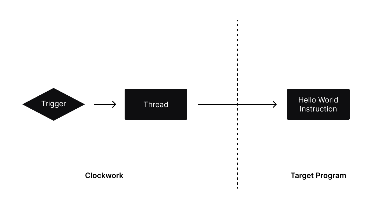 Let's start with the big picture. Solana is a really fast, globally distributed computer. Just as programs on a traditional computer needs to be able to execute an automated series of instructions, so do programs on Solana. Clockwork threads are an automation primitive analogous to computer threads that developers can use to automate programs on Solana. In simple terms, this means we can point Clockwork at any Solana program to automate it. A model of this relationship is presented in the diagram below.